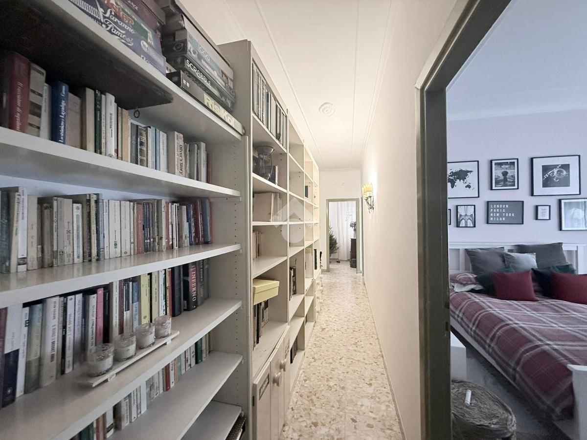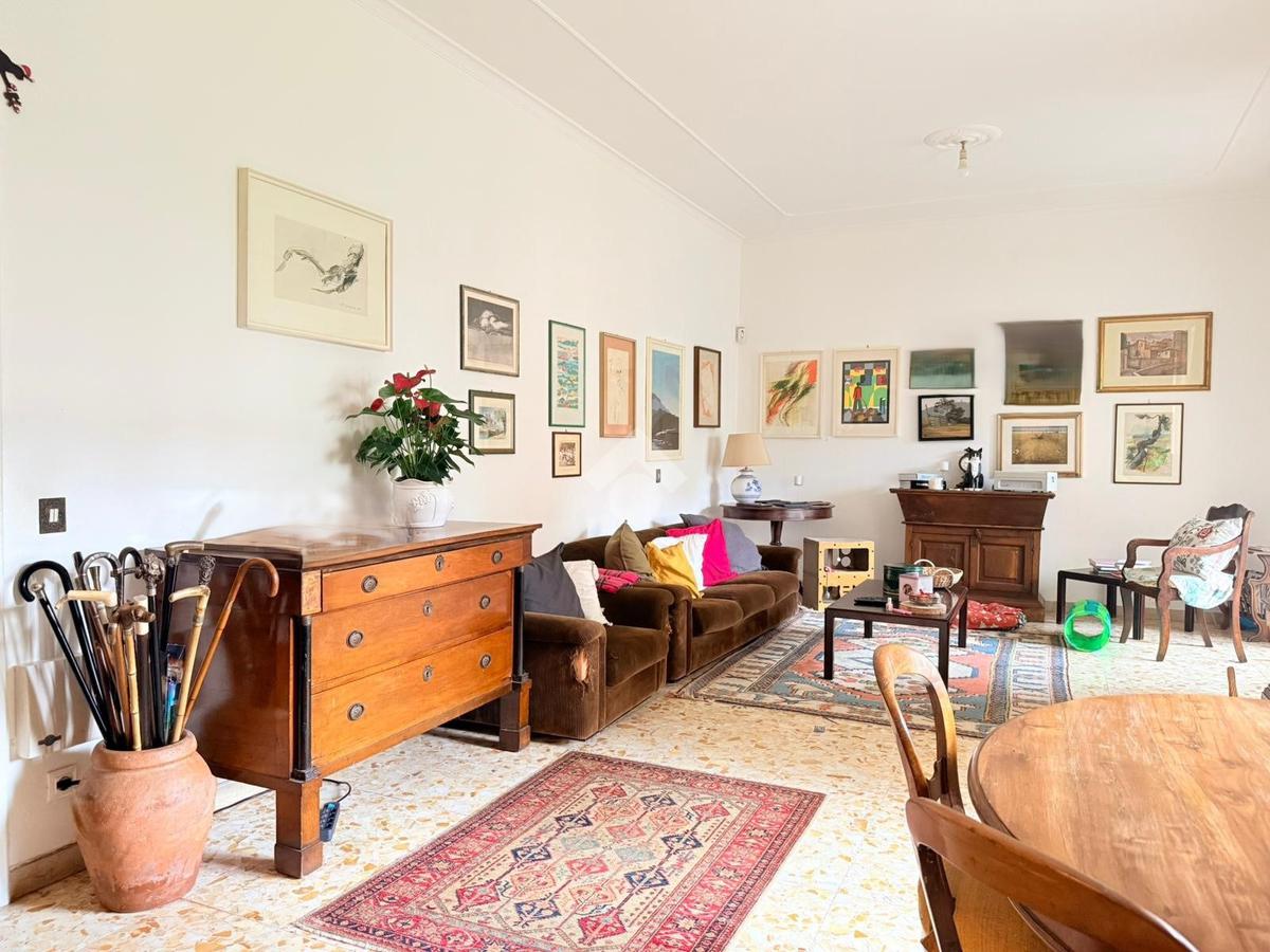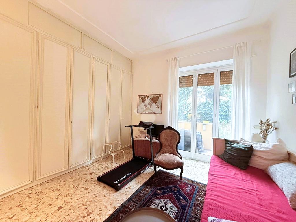 Gli spazi interni sono generosi e ben distribuiti. L’ingresso introduce a una zona giorno ampia e luminosa, con soggiorno doppio che gode di un affaccio diretto sull’esterno. La cucina è abitabile e separata, mentre la zona notte è composta da tre camere matrimoniali, una camera di servizio e due bagni. La triplice esposizione, unita alla metratura importante, offre la possibilità di ottimizzare la distribuzione degli ambienti e valorizzare ulteriormente gli spazi, adattandoli alle esigenze di una famiglia moderna o a soluzioni abitative evolute.