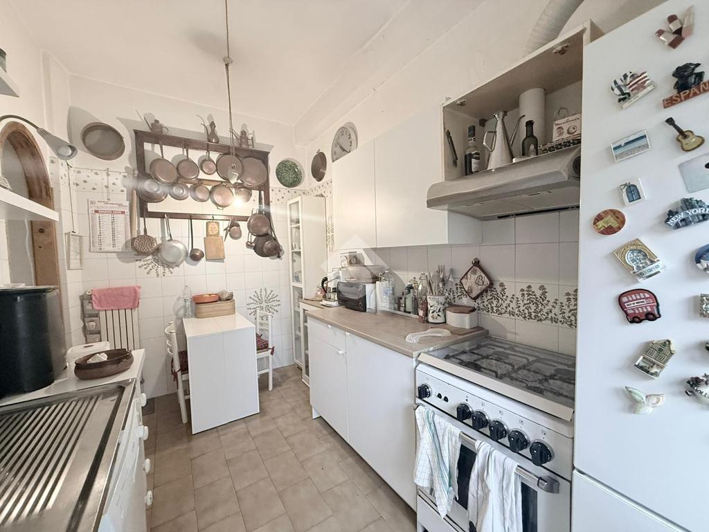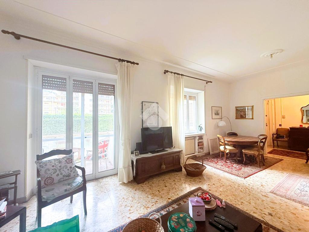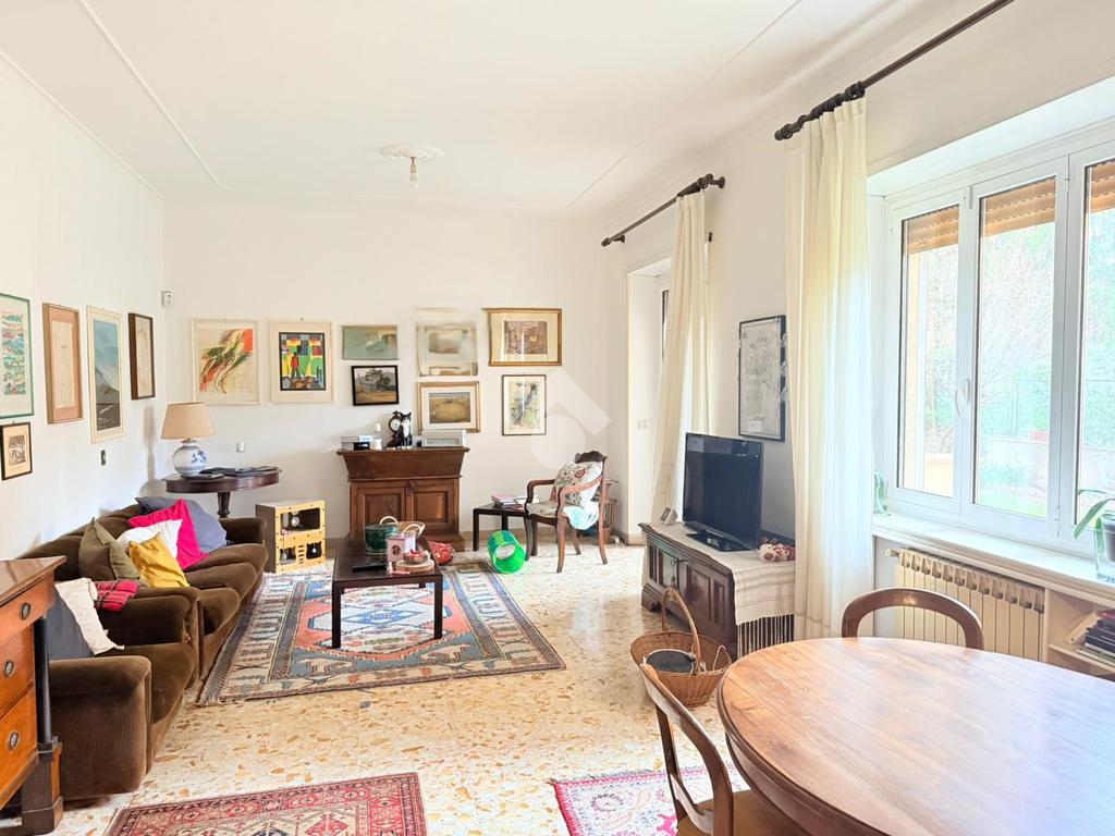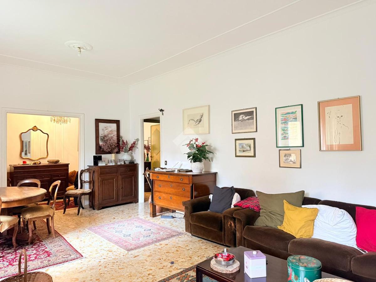 Gli spazi interni sono generosi e ben distribuiti. L’ingresso introduce a una zona giorno ampia e luminosa, con soggiorno doppio che gode di un affaccio diretto sull’esterno. La cucina è abitabile e separata, mentre la zona notte è composta da tre camere matrimoniali, una camera di servizio e due bagni. La triplice esposizione, unita alla metratura importante, offre la possibilità di ottimizzare la distribuzione degli ambienti e valorizzare ulteriormente gli spazi, adattandoli alle esigenze di una famiglia moderna o a soluzioni abitative evolute.